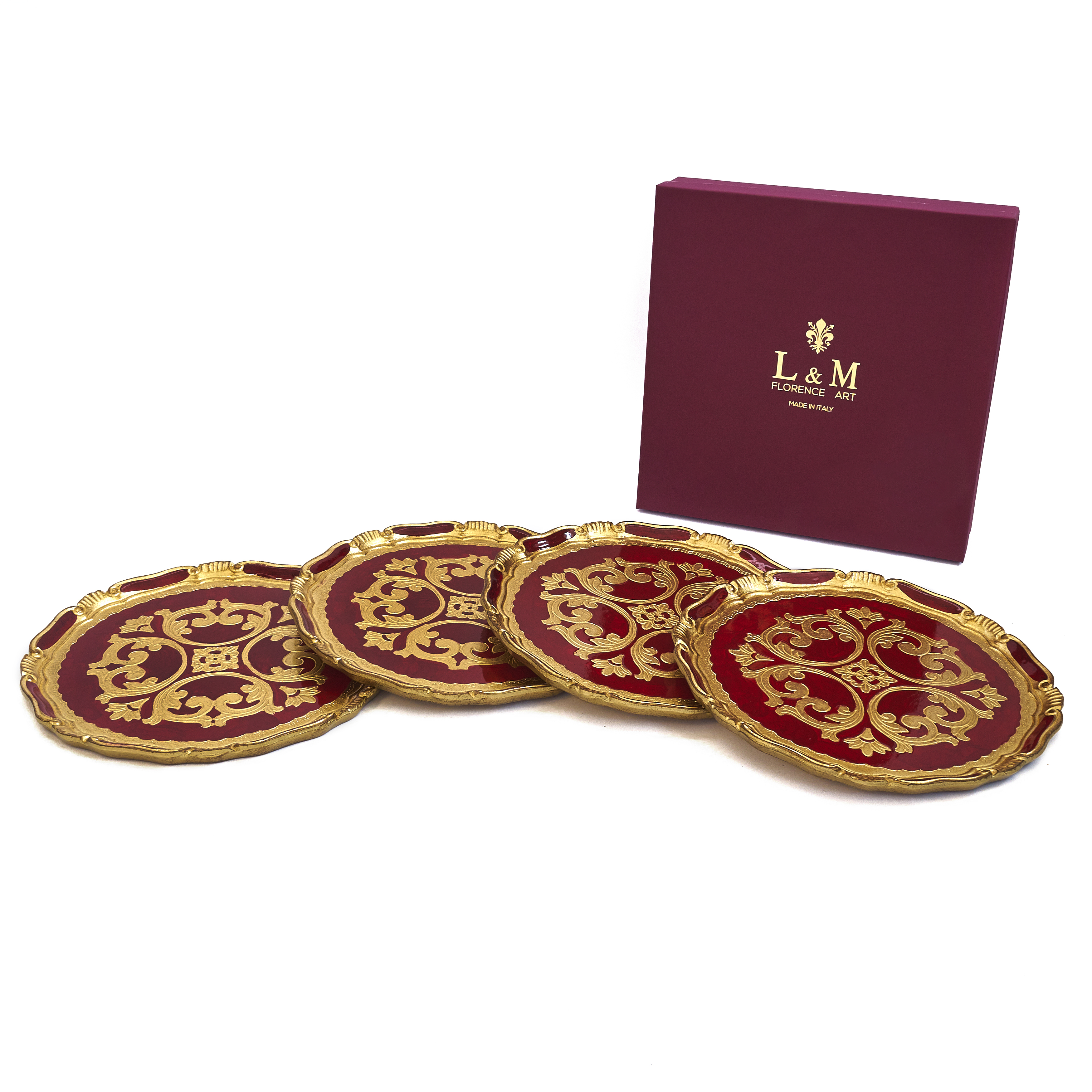 Set 4 pcs - Wooden Florentine charger plate, hand painted in Florence, decorated with gold-leaf